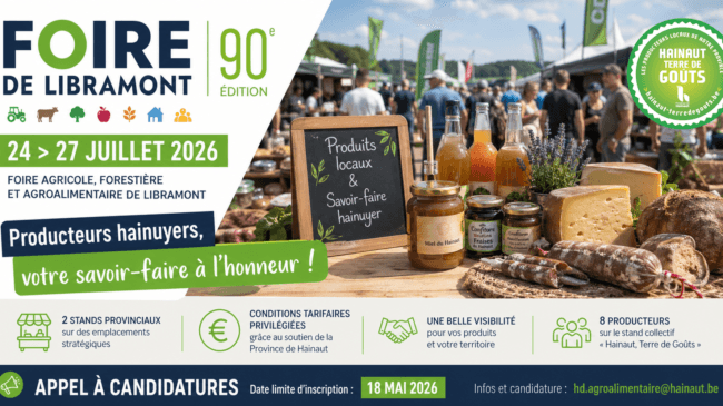 Le mardi 14 avril 2026, la Province de Hainaut organisera la toute première édition du Concours des produits laitiers fermiers, […]