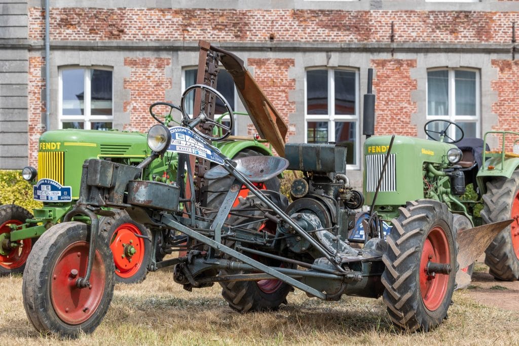 - Tracteurs et véhicules anciens en exposition dans le jardin d’honneur, machines à vapeur