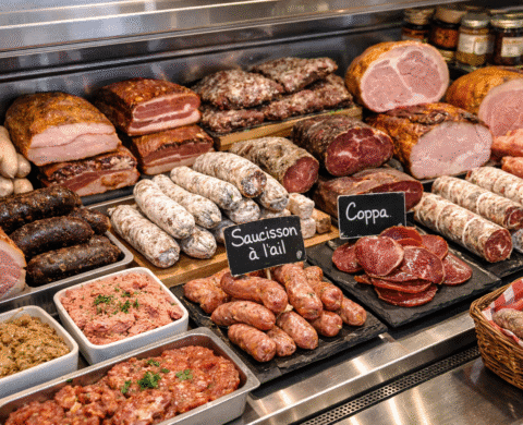 - Charcuterie : Salaisons, jambons, pâtés et boudins noirs et blancs sont faits maison.