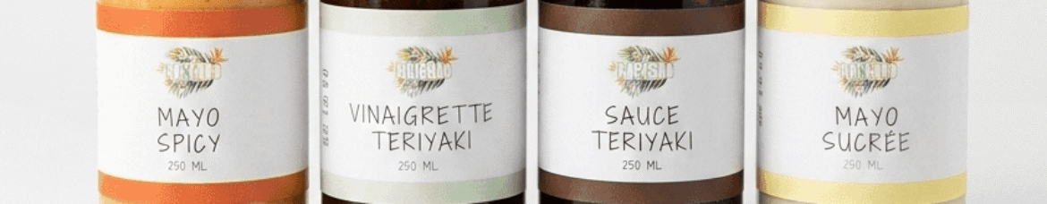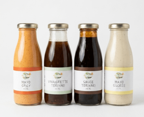 La gamme (Teriyaki, Mayo Spicy, Mayo Sucrée, Vinaigrette) est stérilisée pour offrir une conservation de 10 mois, alliant l’authenticité du goût artisanal aux exigences de la distribution moderne.