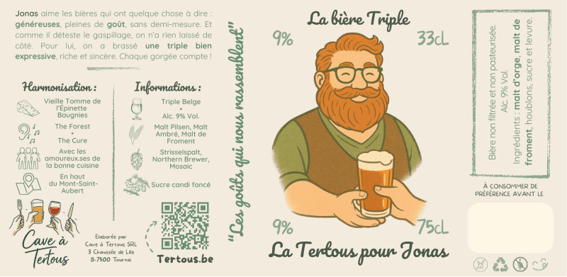 Jonas aime les bières qui ont quelque chose à dire : généreuses, pleines de goût, sans demi-mesure. Et comme il déteste le gaspillage, on n’a rien laissé de côté. Pour lui, on a brassé une triple bien expressive, riche et sincère. Chaque gorgée compte !