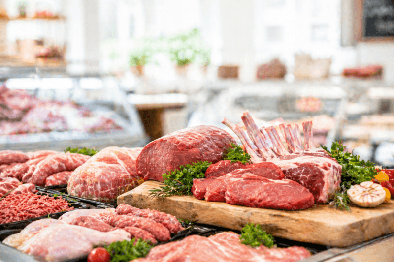 L’étal met en avant différentes viandes :