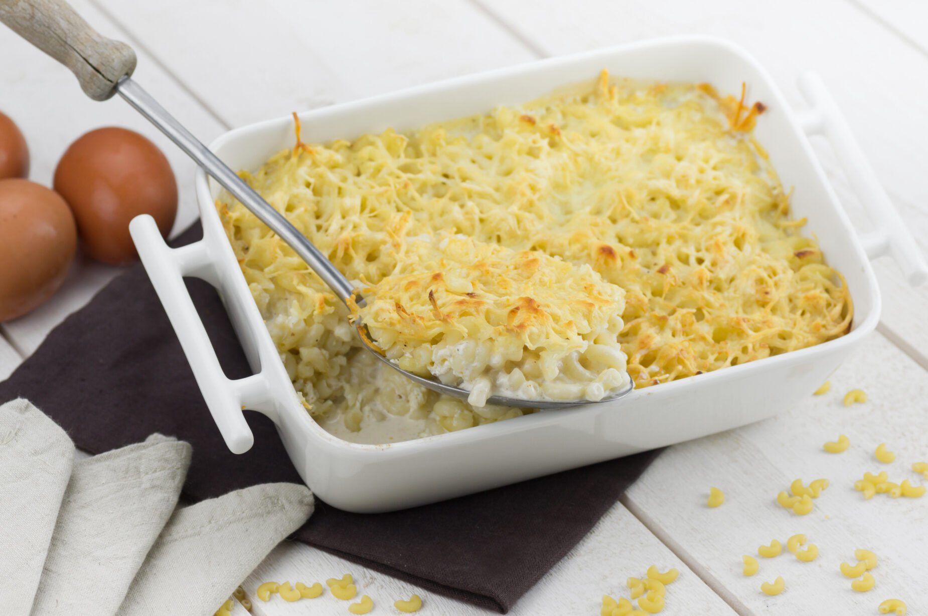 Gratin de pâtes aux poireaux, jambon et ricotta