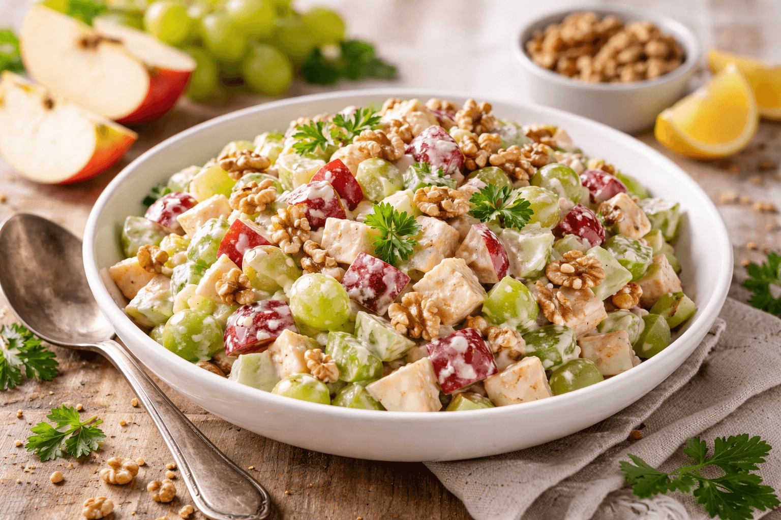 La salade Waldorf est une recette emblématique de la cuisine anglo-saxonne, née à la fin du XIXᵉ siècle dans un grand hôtel new-yorkais.